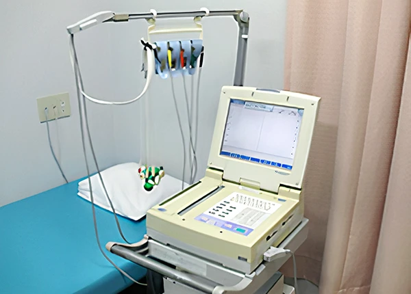 心臓が収縮する時に発生する微弱な電気を記録し不整脈・狭心症・心筋梗塞・心肥大などを調べる基本的な検査です。