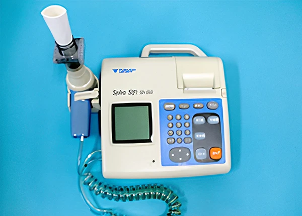 肺機能検査とは肺に出入りする空気の量(肺活量)や吸った息を早く吐くことができるのか(速度)を測定し、肺の柔軟性や気管支の状態・機能や呼吸器疾患がないかを調べる検査です。