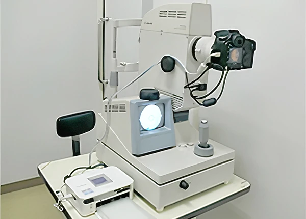 当院では、無散瞳眼底カメラを使用し、暗い部屋で自然に広がった瞳孔の状態で眼の奥(眼底)を撮影します。