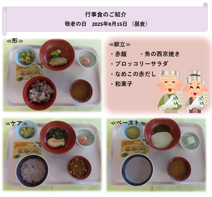 この日にちなみ、長寿を祝ったお赤飯や和菓子を提供しました。
